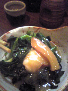 待ち合わせまでの時間、少し歩くけれども、深沢まで足を延ばしてみた。 前に土曜の17時過ぎに行ってみたけれど、全く店が開く気配がなかったので 開いてる開いてる。 店はカウンターに入口近くにこあがりの4人席がある。 阪神巨人戦が気になってしょうがないんやけど、店のテレビは まずはチューハイ320円をお願いする。 壁に貼られているメニューはそんなに多くない。 煮込み。結構ワシ好みの味だ。 普段は日体大の学生で賑わうらしいこの店も春の土曜は 玉子焼き。サイズも大きく、醤油など何もなしでほんのり甘みとネギがよく お酒に切り替える。銘柄はようわからんのだが、やや辛口だ。 花粉症のクスリがキレはじめて来たらしく、鼻水が出てくる。 お店の営業時間を聞いてみて納得。 花粉が終わったら、自転車で来るのもええなぁ。 お酒を追加し、わかめねぎぬたを貰う。 |